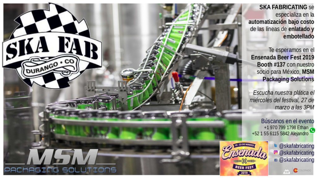 Ska Fab, de Durango Colorado EU, comenzaron a fabricar sus equipos para automatizar las lineas de embotellado y luego enlatado de Ska Brewing, su empresa hermana que produce cerveza artesanal. Son diseñados para ser económicos y minimizar el espacio que ocupan en el piso de operaciones, por y para productores independientes.